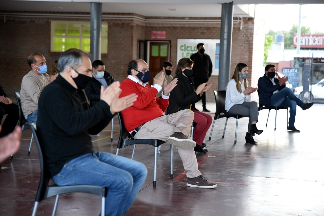 La secretaria de Educación, Patricia Saseta; la directora de Políticas Sociales Educativas, Josefina Herr y el director de Educación, Enrique Giménez; acompañaron al jefe comunal en el lanzamiento, durante un acto que se realizó en la Escuela Municipal N° 3 “Gustavo Levene”.