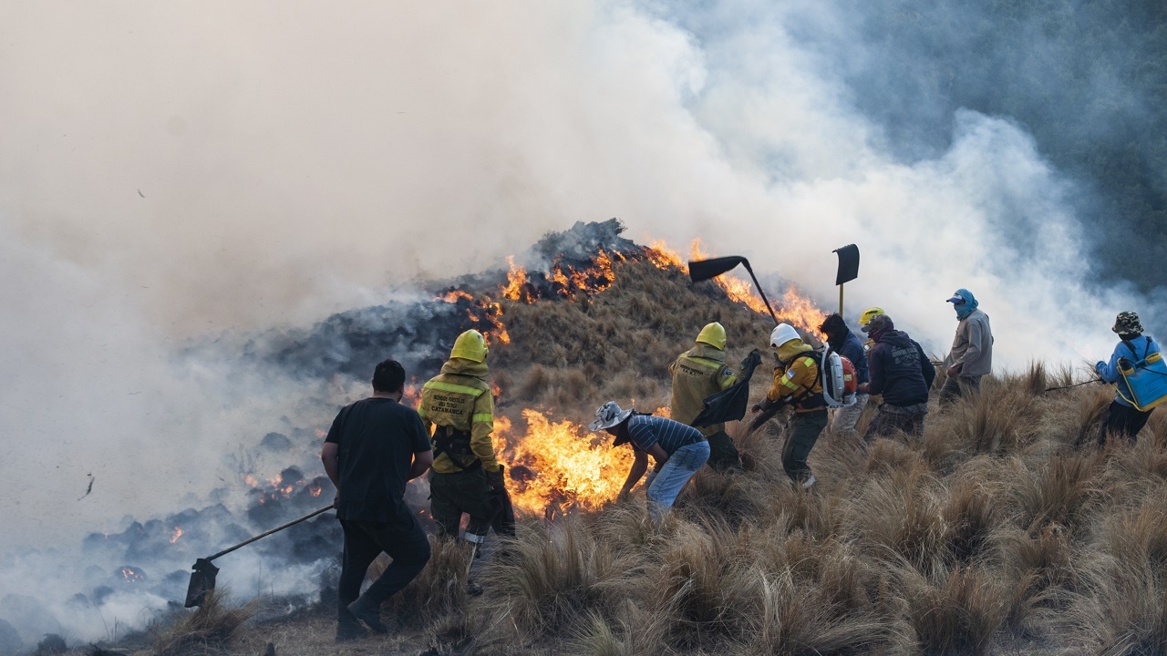 Las tareas de sofocación que realizaron los combatientes durante la jornada de ayer se centraron en un sector donde las llamas consumían velozmente pastizal hacia la zona de la localidad de Tintigasta.