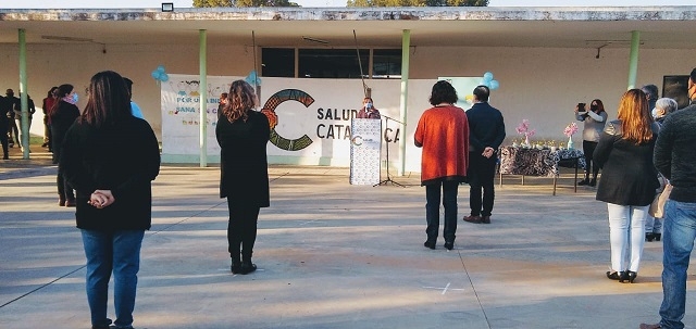 Hoy, en el playón del Ministerio se realizó el izamiento de la Bandera Nacional, acompañada por la banda de la Policía de la provincia (Por protocolo solo asistieron dos músicos), y posteriormente habló el director de Vectores, Rosendo López, quien reconoció la labor del equipo de trabajo y ponderó la importancia de la colaboración de otras instituciones y organismos con el fin de eliminar la enfermedad de Chagas.