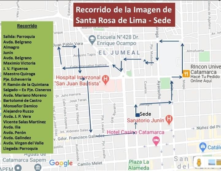 11:00- Continúa la caravana desde la Capilla del Señor del Milagro, por los barrios Los Amigos, Hipódromo, Piloto, San Pedro; regresando a la Sede Parroquial, en horas del mediodía, por Avda. Virgen del Valle.