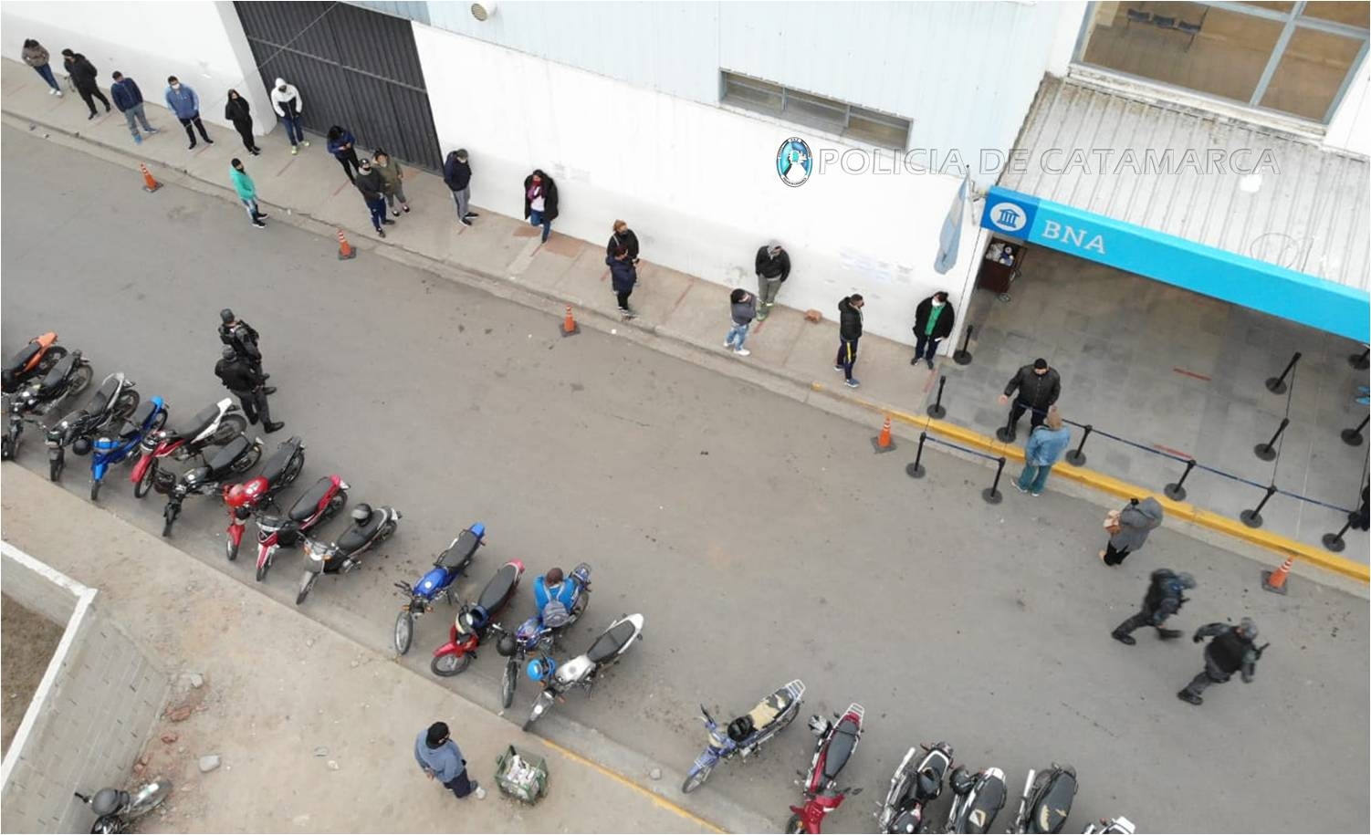 El Comando de la Institución decidió reforzar esta medida debido a la situación epidemiológica actual de la provincia que es totalmente distinta a la que se registra en provincias vecinas, por lo cual el personal policial controla el uso de barbijos sanitarios y el correspondiente distanciamiento social entre las personas que aguardan ser atendidas en entidades bancarias o comercios, emitiendo también mensajes preventivos por medio de altavoces de unidades móviles.
