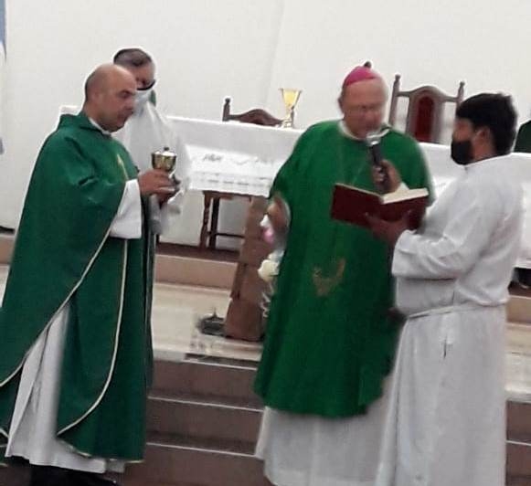Lo hizo durante la Santa Misa presidida por el Obispo Diocesano, Mons. Luis Urbanc, en el templo de María Auxiliadora, y concelebrada por el Pbro. Carlos Ibáñez, quien se desempeñó anteriormente como Administrador Parroquial, y los Pbros. Facundo Brizuela y Sebastián Vallejos, junto al Diácono Permanente Sergio Colósimo y seminaristas catamarqueños.