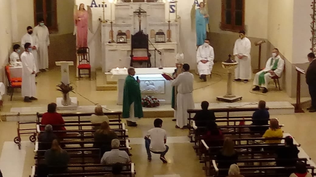 Los fieles participaron de la Eucaristía respetando las medidas dispuestas por las autoridades sanitarias con el 50 por ciento de ocupación del templo, la colocación del barbijo y el alcohol desinfectante. Se dieron cita feligreses de la parroquia anfitriona como también de la parroquia de Nuestra Señora de la Merced, con sede en Villa Dolores, Valle Viejo, donde el Padre Batallán sirvió pastoralmente antes de su llegada a su nueva comunidad.