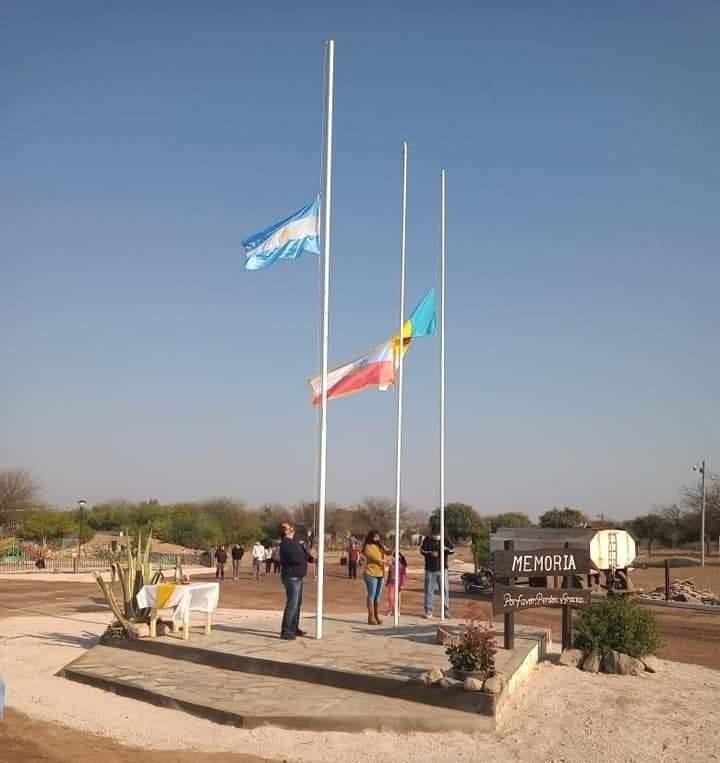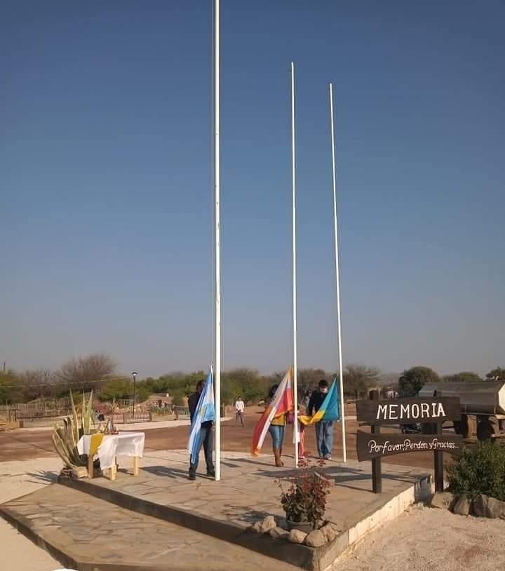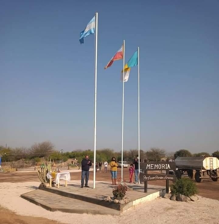 Las insignias patrias se izaron en los mástiles recientemente construidos por personal de la Delegación Municipal, y encuentran ubicados en el ingreso por Ruta Provincial N°20, en la localidad de Esquiú, departamento La Paz.
