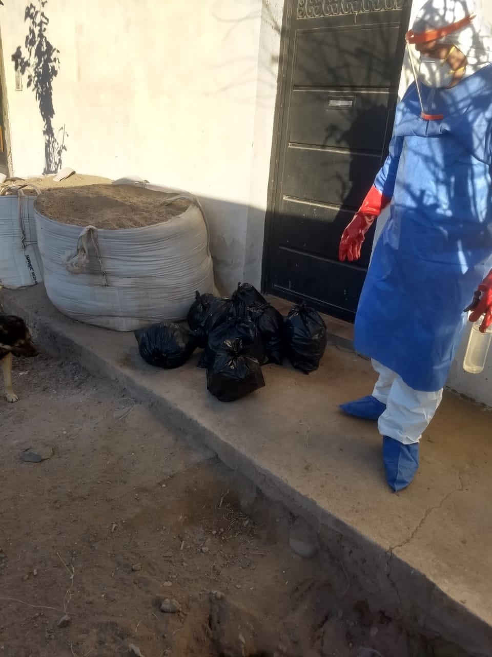 El protocolo establece que los residuos deben ser almacenados 72 horas, antes de ser retirados del domicilio. “La gente nos entrega los residuos en una bolsa negra común y nosotros las colocamos en bolsas rojas para residuos patógenos, porque al tener contacto con una persona positiva pasa a ser un residuo peligroso”.