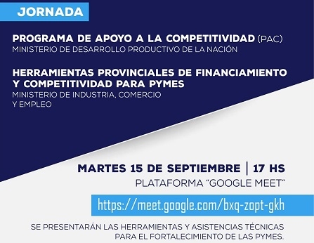 La presentación se realizará de manera virtual, el próximo martes 15 de septiembre, a las 17, por la plataforma MEET, por lo que se invita a todos los actores del sector PyMEs y otros interesados, a participar para que conozcan la asistencia técnica financiera con ANR’s, que ofrece el PAC, destinada a potenciar la productividad a través de la transformación digital.