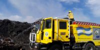 La cuadrilla de combatientes, en conjunto con Bomberos de la Policía de la Provincia y la colaboración de un camión cisterna de la Municipalidad de la ciudad Capital, realizan trabajos de enfriamiento del perímetro con autobombas, luego de haber controlado el avance de las llamas.