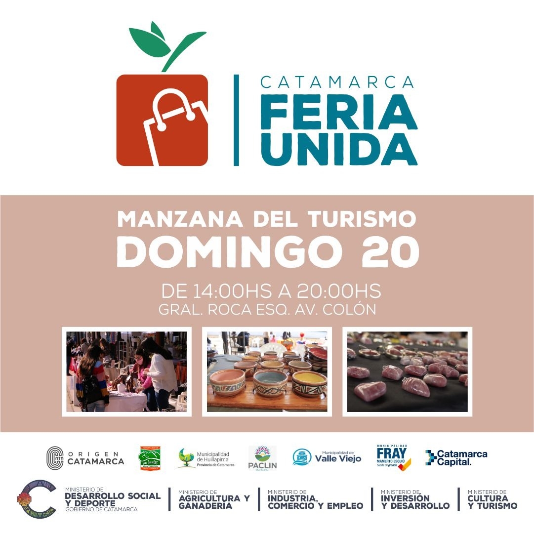 La Feria Unida es promovida por el Gobierno de Catamarca, a través de los Ministerios de Cultura y Turismo, Desarrollo Social y Deportes, Agricultura y Ganadería, el de Industria, Comercio y Empleo y el de Inversión y Desarrollo, a los que se suman los municipios de Capital, Fray Mamerto Esquiú, Valle Viejo, Huillapima, Las Juntas y Paclín, con la intención de impulsar la reactivación de la economía social.