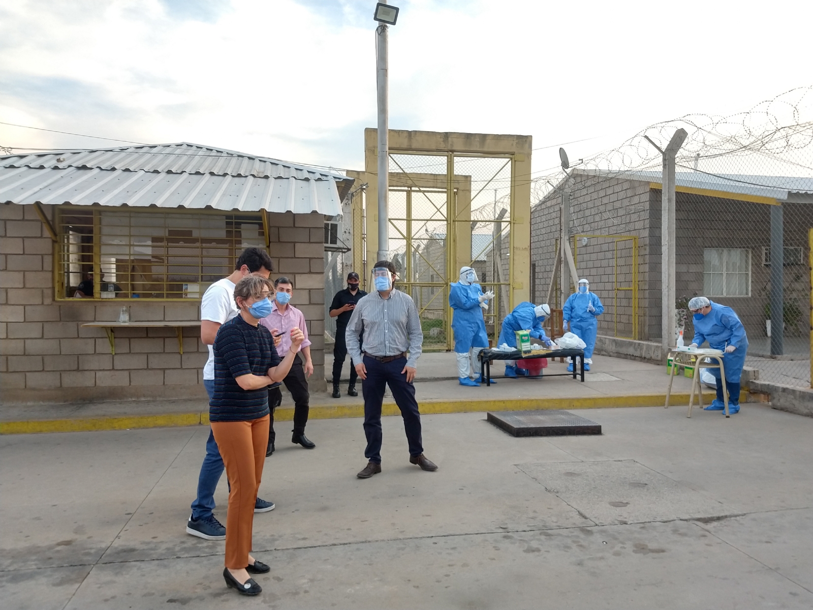 Mientras se realizaban los hisopados, los Ministros y el Director dialogaron con los internos acerca del operativo, la prevención y los pasos a seguir. “Desde lo sanitario, inmediatamente cuando tuvimos conocimiento de este caso positivo, que surge de la vigilancia activa que hacemos - cuando alguien tiene síntomas respiratorios, más allá de que haya alguna historia de nexo o no, igualmente se lo considera como sospechoso, se le realiza el hisopado y se lo aísla- ya teníamos parte de la historia de esta persona. Cuando se realiza el hisopado se hace una primera anamnesis y, por tal motivo, teníamos la historia de cuando había hecho guardia aquí. A pesar de que en las guardias como celador el contacto no es estrecho con los internos de los pabellones que le corresponden, de una manera preventiva, por tratarse de un lugar donde las personas conviven, se decidió desde el COE Salud, acercarnos a la Penitenciaría, en articulación con el Director y el Ministro de Seguridad y sus equipos, para poder realizarles el testeo correspondiente a los internos de los pabellones donde este señor fue celador, donde hizo su última guardia que fue el domingo”, explicó Palladino.