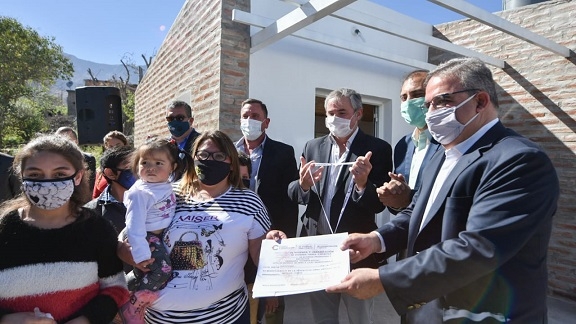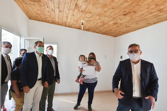 "Seguiremos adelante con las obras y las entregas", aseguró el Ministro Saenz. "Vamos a ir entregando a medida que vayamos terminando las obras para evitar en lo posible entregas masivas. Lo venimos haciendo con mucho cuidado y con todos los protocolos y así seguiremos, como hoy en Mutquín que Nanci y Gisell ya tienen su nuevo hogar", aseguró.