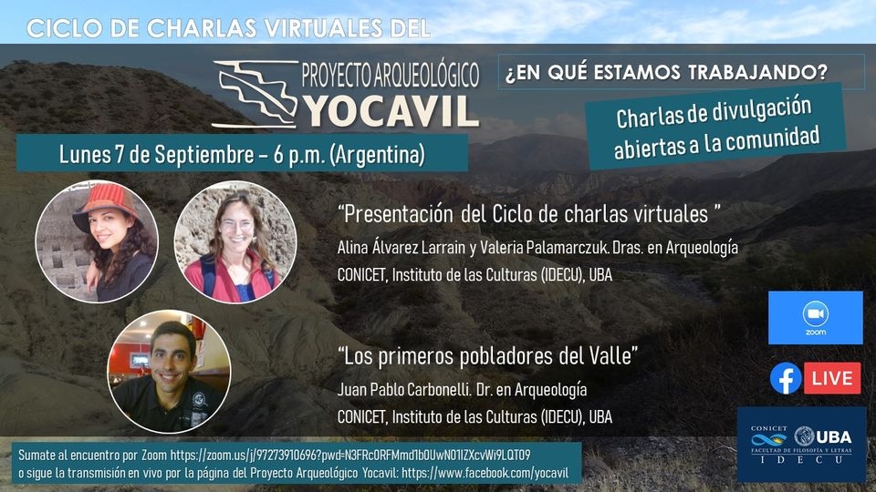 - Alina Álvarez Larrain y Valeria Palamarczuk. “Presentación del ciclo de charlas y de la trayectoria del Proyecto Arqueológico Yocavil”.