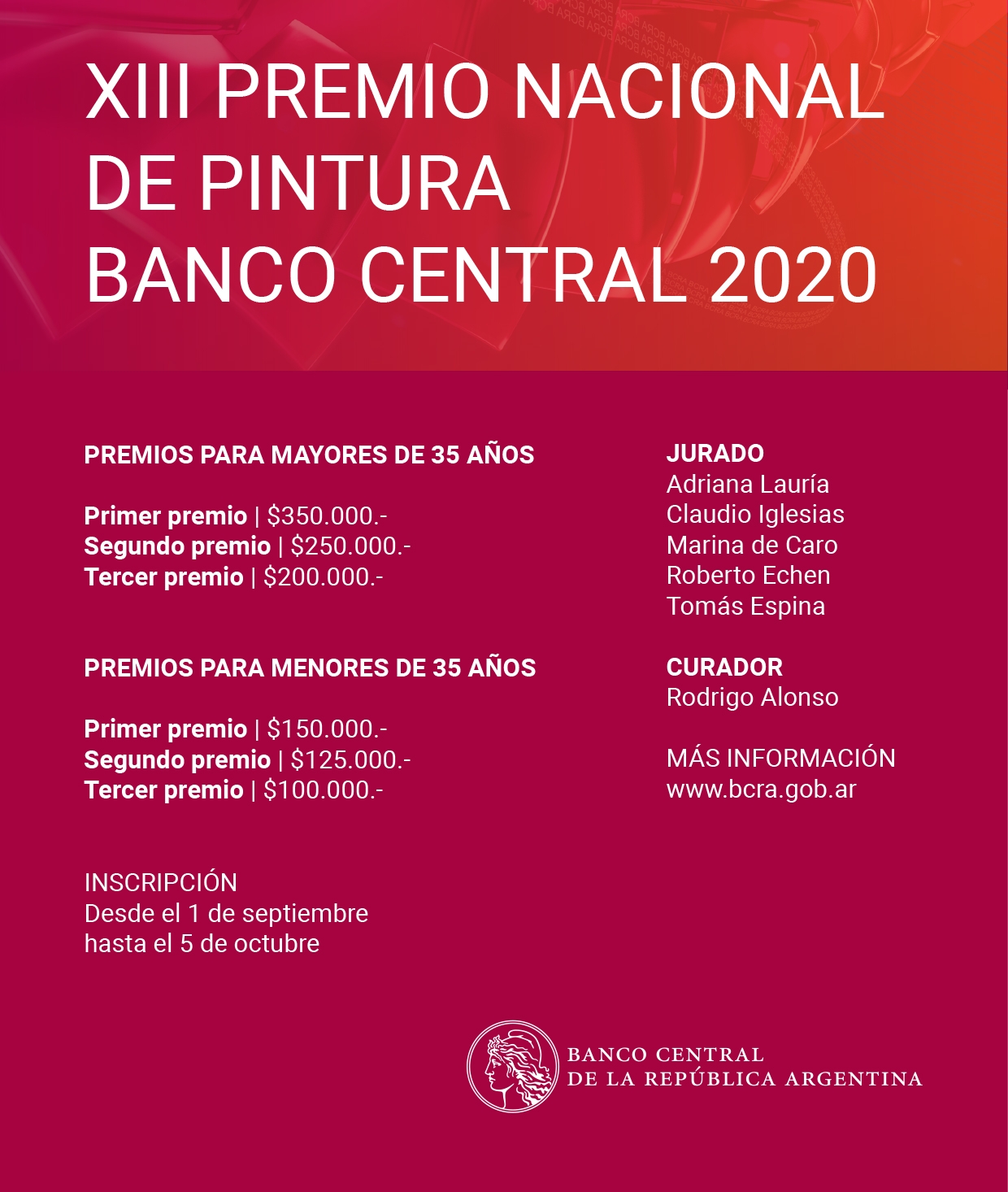 El Premio Nacional de Pintura Banco Central promueve el arte contemporáneo argentino y acerca el trabajo de los artistas a la comunidad. Más de 8 mil artistas participaron de las doce ediciones anteriores. Además, el carácter federal está dado por la muestra itinerante de la colección premiada que ya ha recorrido casi la totalidad de las provincias.