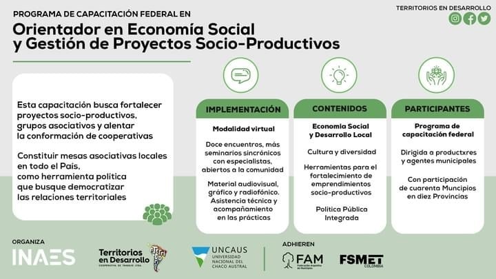 La capacitación busca fortalecer iniciativas de grupos asociativos y alentar la conformación de cooperativas. Se realizará en diez provincias del país, mediante un acuerdo entre la Federación Argentina de Municipios y el Foro Social Mundial de las Economías Transformadores (FSMET) Colombia.