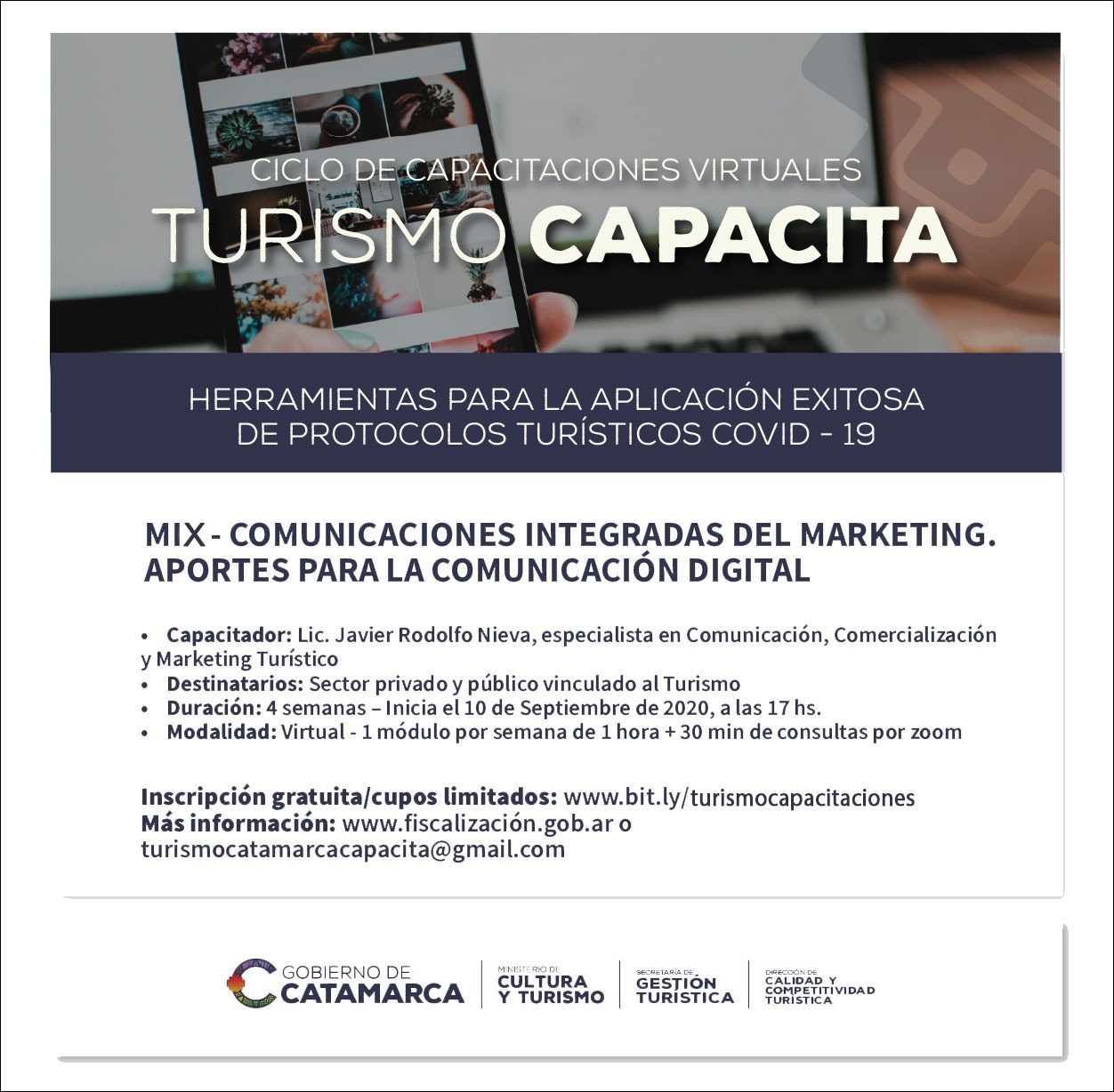 Se trata del cuarto curso programado dentro del ciclo “Turismo Capacita. Herramientas para la aplicación exitosa de protocolos turísticos COVID19” que impulsa el Ministerio buscando preparar y capacitar a los prestadores y operadores turísticos públicos y privados en este contexto de pandemia. Anteriormente se dictaron cursos vinculados a la calidad en la atención al turista, manipulación de alimentos para sector gastronómico, y salud y seguridad laboral en empresas turísticas.