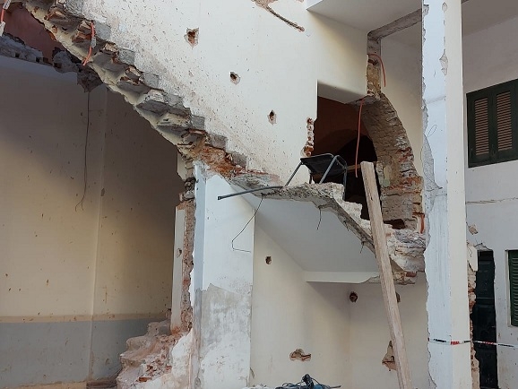La parte de estructura que colapsó es la pared de una escalera interna secundaria que llevaba del hall principal al despacho de Gobernación. La misma, según pudieron atestiguar las autoridades, contaba con serios defectos edilicios ya que estaba construida sin hierros de contención", expresa el parte de prensa difundido en la mañana de este lunes.