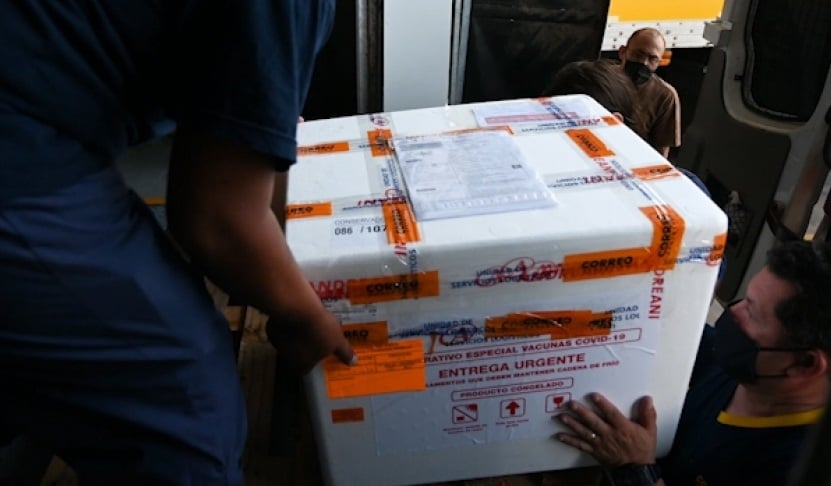 "El Ministerio de Salud de la Nación en conjunto con otros organismos del Estado realizó un trabajo conjunto para lo que fue la recepción, el retiro de Aduana directamente en pista, y el trabajo logístico para poder directamente empezar desde esta madrugada la distribución de las vacunas a todo el país", informó Vizzotti durante el informe diario que sobre la situación epidemiológica del Covid-19 realiza el Ministerio de Salud.
