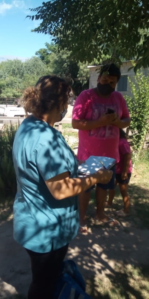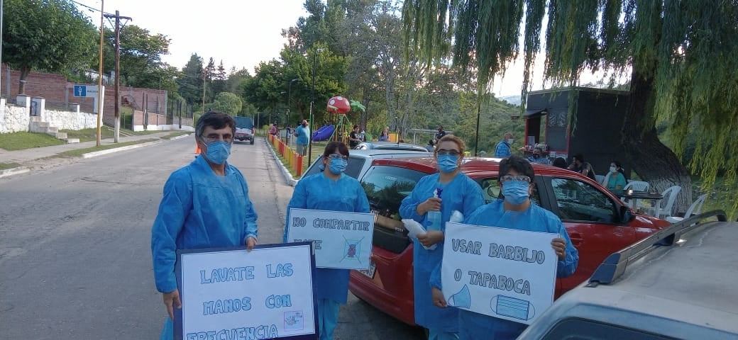Los agentes sanitarios del Área Programática N° 3, del departamento Paclín, realizan acciones de prevención en la localidad de la Villa de Balcozna contra el Covid-19, entregando barbijos, alcohol y folletería. Además, en Icaño, departamento La Paz, realizan control de febriles para detectar casos de Coronavirus.