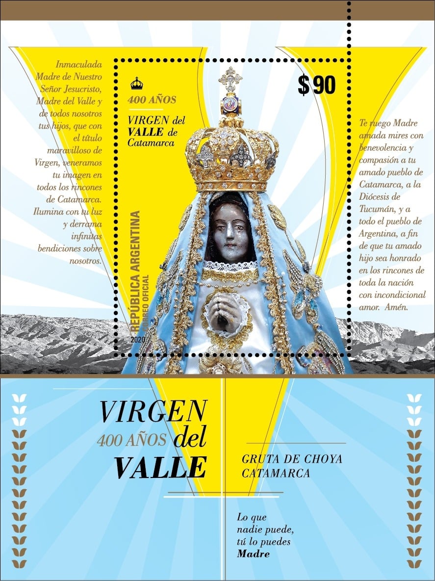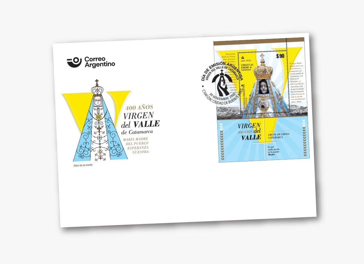 El matasello lleva el logo del Año Mariano Nacional y en el sobre se observa un dibujo de la Virgen del Valle y el tema que iluminó este tiempo de gracia: “María, Madre del Pueblo, Esperanza Nuestra”, además de la leyenda “400 años - Virgen del Valle de Catamarca”.