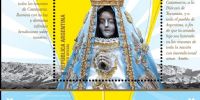 La emisión postal filatélica denominada “400 años - Virgen del Valle de Catamarca" lleva plasmada una fotografía de la imagen de la Virgen del Valle con la vestidura según la usanza española, consistente en la túnica blanca y el manto celeste, y la corona con la que fue coronada el 12 de abril de 1891. La hoja block contiene, entre otros elementos, una oración a la Virgen del Valle con un paisaje montañoso, típico de la geografía catamarqueña, de fondo; completa el cuadro la leyenda “400 años Virgen del Valle” y la referencia a la Gruta de Choya, donde fue hallada la Sagrada Imagen.