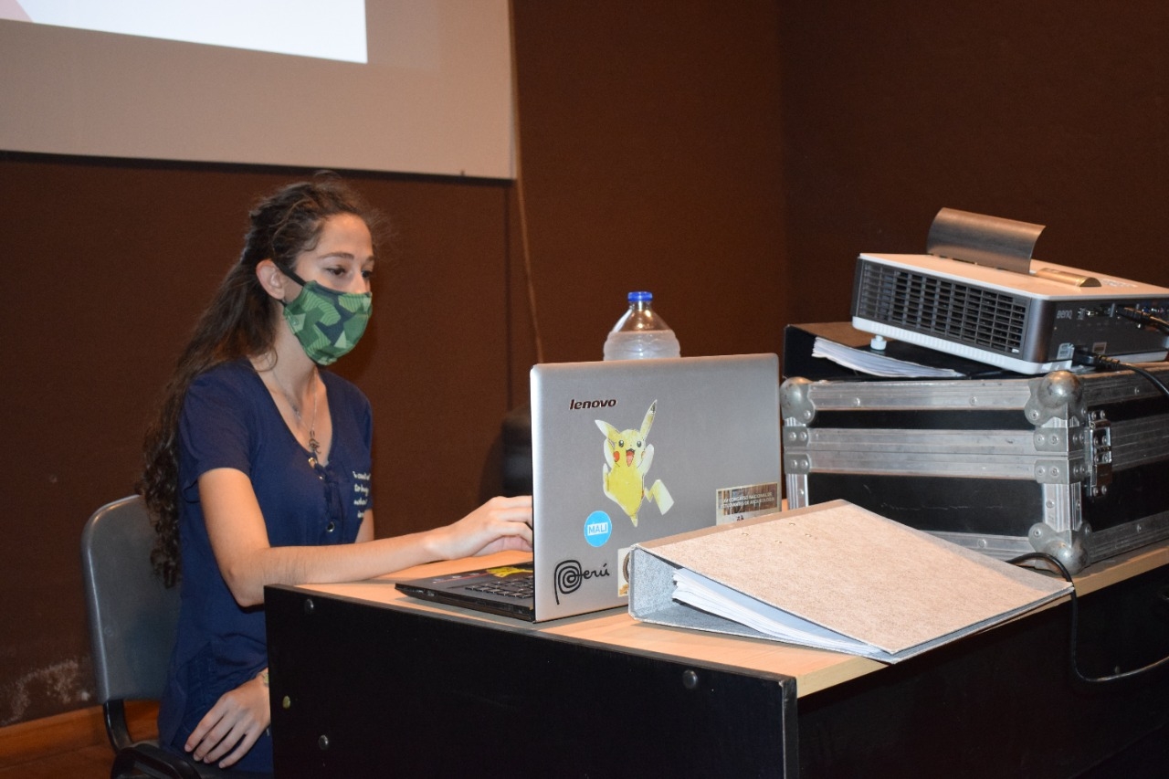 La profesional compartió de modo sintético los resultados de su tesis de grado, denominada, “Pintando a la antigua: aproximación arqueométrica y experimental al entendimiento de las cerámicas Aguada Portezuelo (600-900 dc) del sitio La Viñita”.