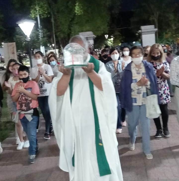 Los fieles junto con el párroco, Pbro. Héctor Moreno, se congregaron para participar de este acontecimiento. En el templo, rezaron el Santo Rosario y se acercaron a tomar gracia delante de las reliquias.