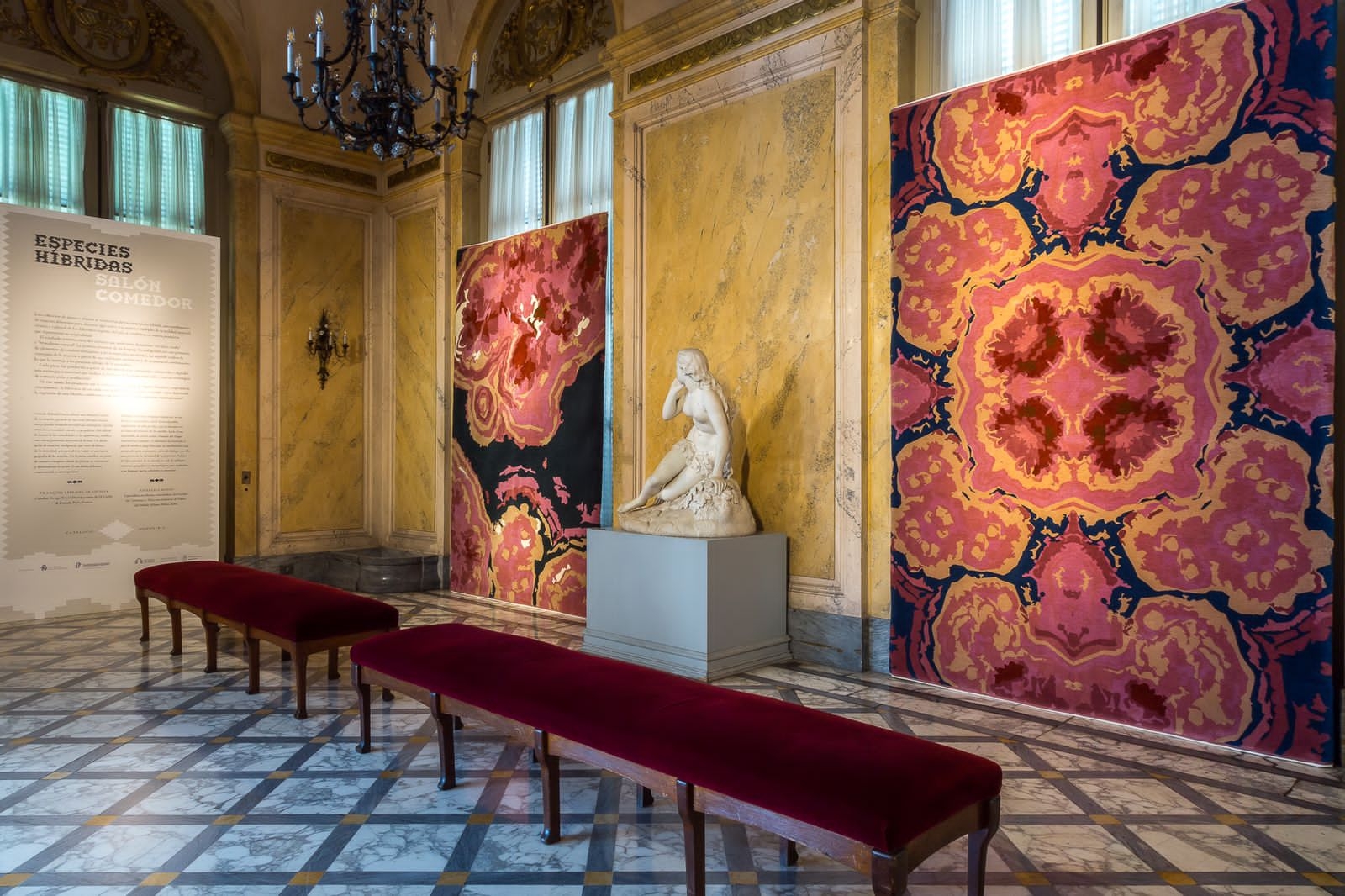 En ese sector se exhiben –colgadas- dos alfombras de 2 metros de ancho por 3 de largo, tejidas por artesanas de la Fábrica de Alfombras de Catamarca. Los diseños –realizados con 90 mil nudos por metro cuadrado- representan las vetas rosadas que florecen en los cortes de la rodocrosita, piedra semipreciosa que se encuentra en las entrañas de las montañas de Andalgalá, en Catamarca. Las artesanas que trabajaron durante más de un año en el tejido de estas alfombras fueron Soledad Acevedo, Isabel Argañaraz, Soledad Barrientos y Jorgelina Corzo.