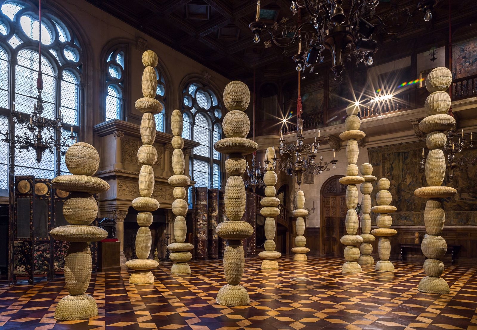 La exposición Territorio Híbrido toma la planta completa del Palacio Errázuriz, edificio del Museo Nacional de Arte Decorativo, y se divide en módulos temáticos. Al ingresar al edificio se encuentra Campo de Torres, una instalación de columnas monumentales en donde Cristián se apodera del Gran Hall del museo, proponiendo un acercamiento sensitivo al paisaje de Catamarca, su provincia natal. A través de estas torres tejidas en cestería tradicional, el diseñador plantea una experiencia que invade los sentidos y permite al espectador sumergirse en la atmósfera de los valles y montes del norte argentino.