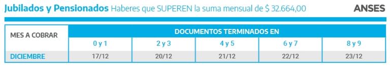 Las pensiones no contributivas comenzarán a cobrar según terminación de DNI desde el primer día del mes, las jubilaciones con haberes que no superen 32.664 pesos lo harán el 7 de diciembre, y las que superen este haber comenzarán a percibirlo desde el 17.