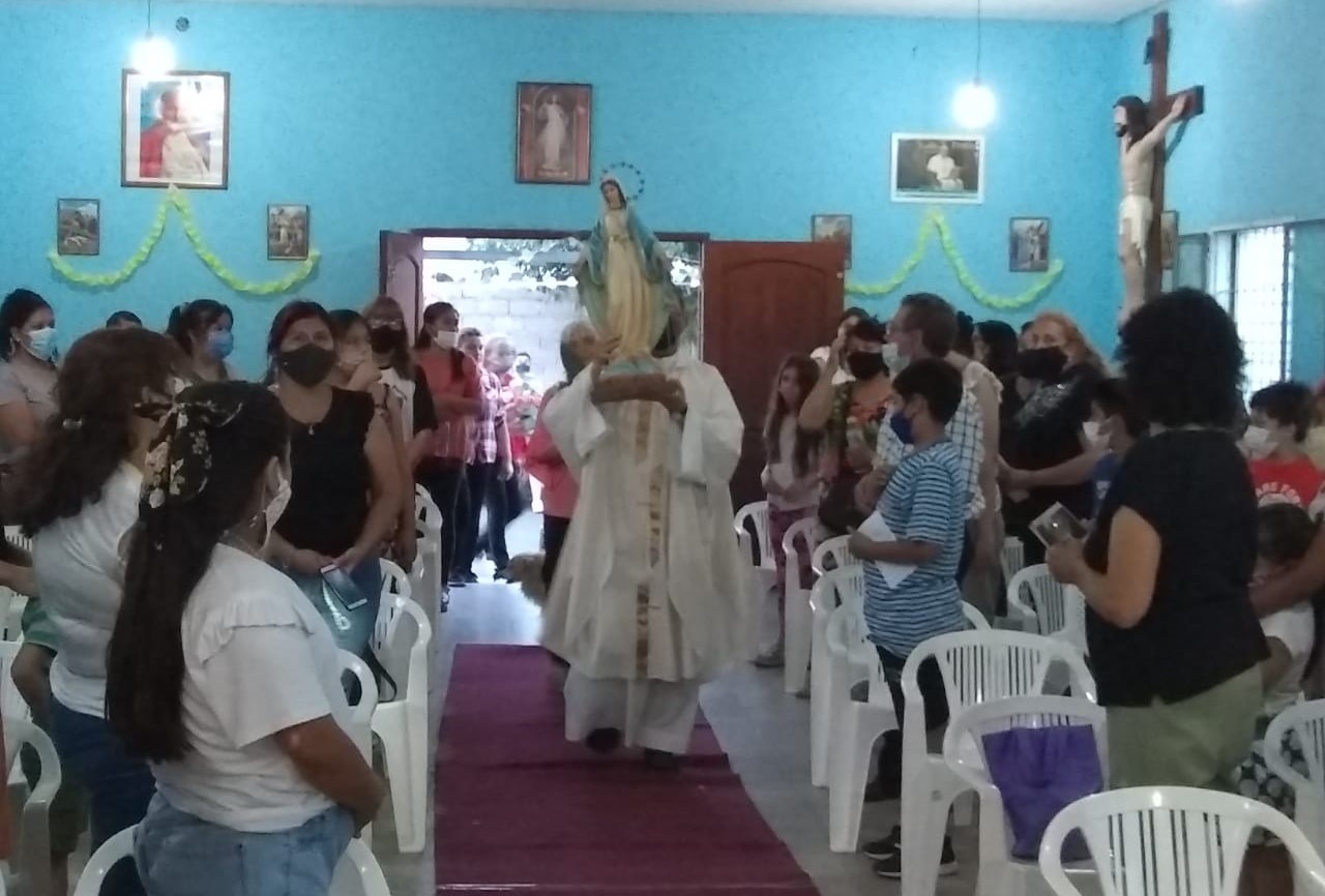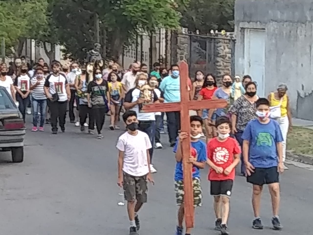 Los vecinos participaron de la procesión por las calles del sector y de la celebración de la Santa Misa, presidida por el párroco, Pbro. Reinaldo Oviedo. Durante la ceremonia litúrgica se administró el sacramento del Bautismo a una niña de la comunidad.