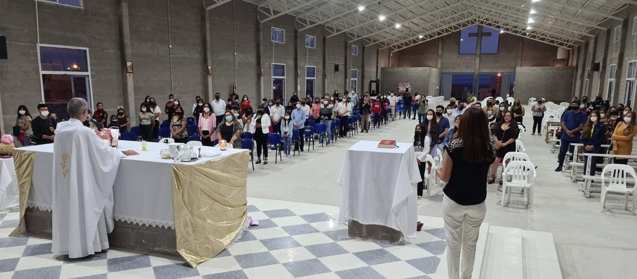 Durante la celebración de la Santa Misa, el párroco, Pbro. Héctor Salas, administró el Sacramento de la Confirmación a jóvenes de esa comunidad.