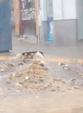 En pleno centro, se obstruyó la cañería de cloacas que brotaba por las bocas de registro. Además, se registraron filtraciones en los techos de la Escuela Nº36 del barrio España en la localidad de Huillapima.