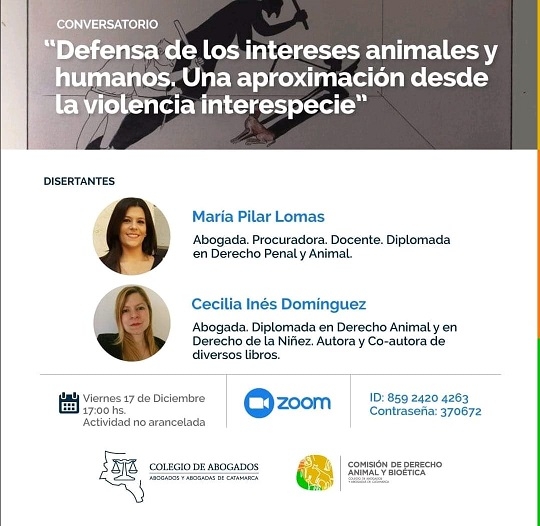 El mismo se concretará a través de la plataforma Zoom; está organizado por la comisión de Derecho Animal y Bioética del Colegio de Abogados de Catamarca y es de carácter gratuito.