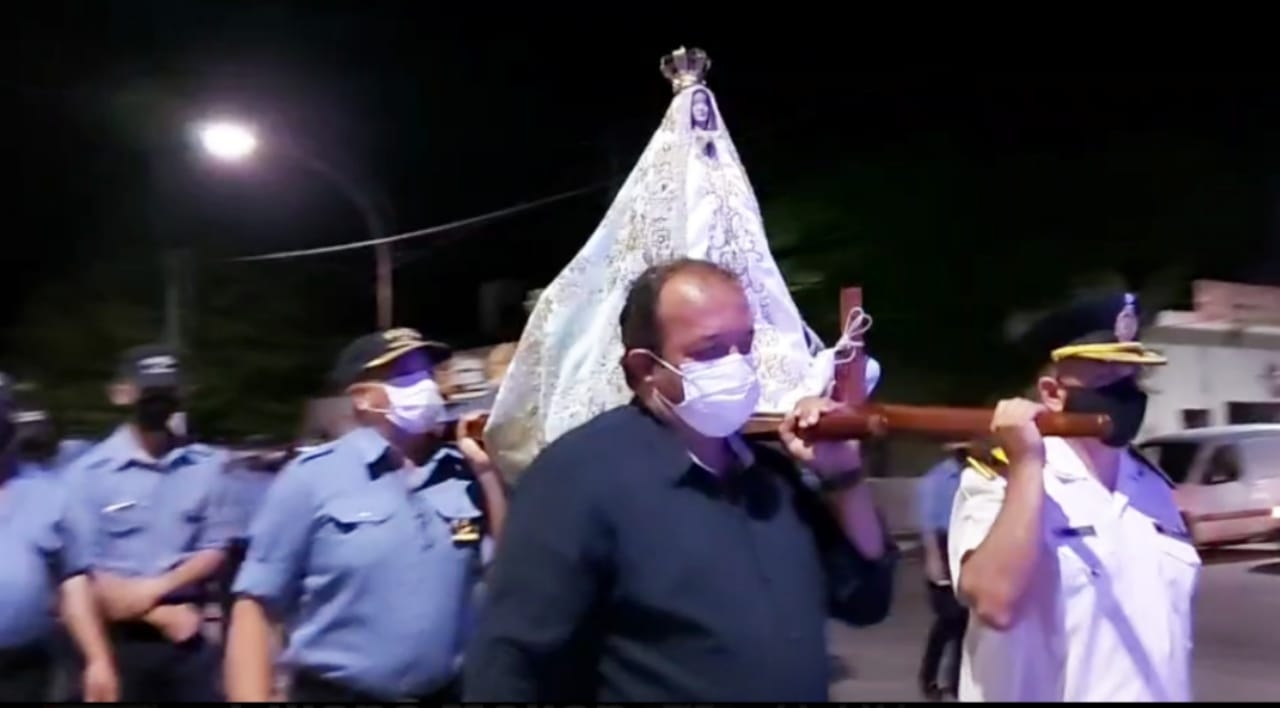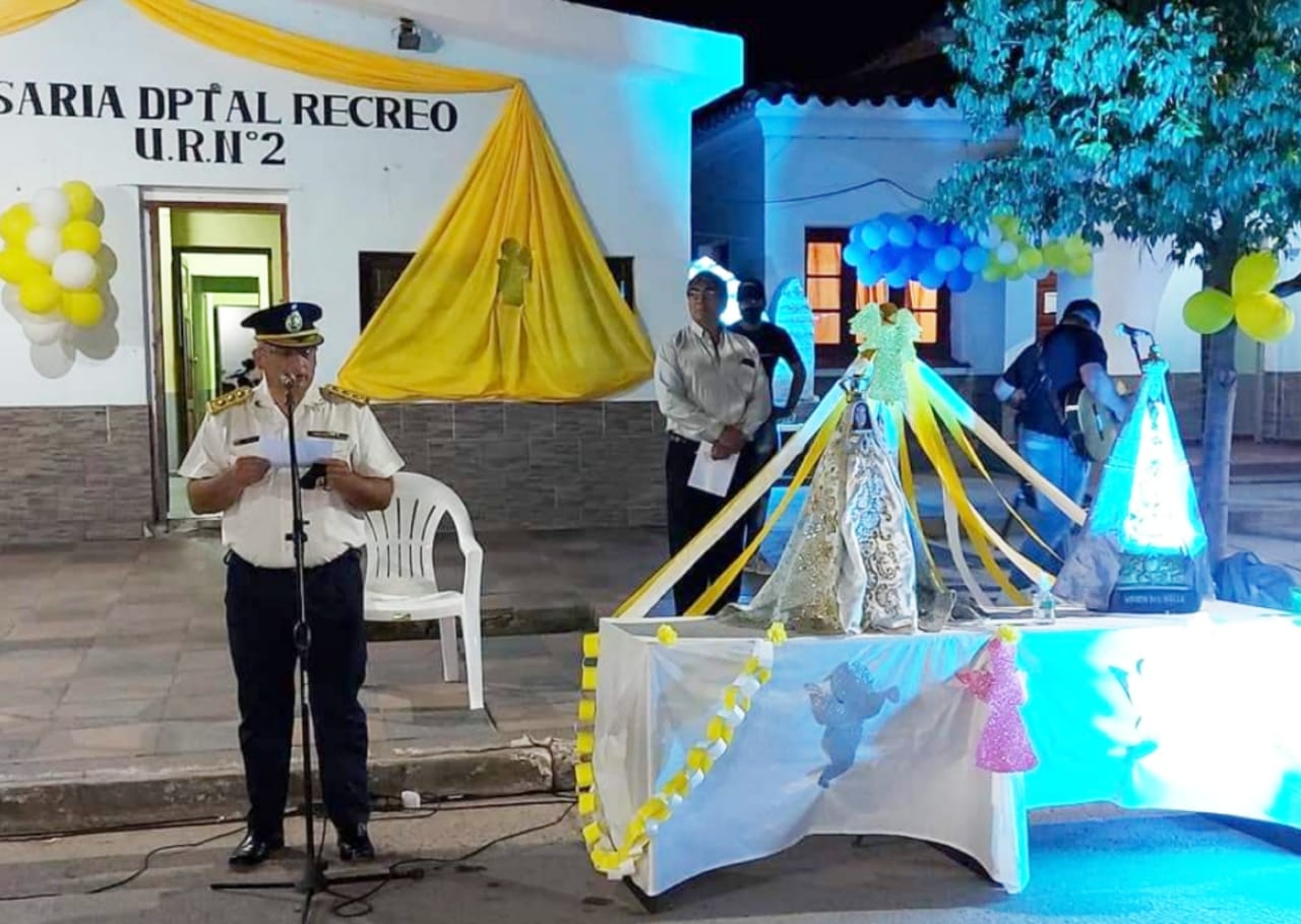 Y a las 20.30 hs. la Sagrada Imagen llevó al acceso norte de Recreo y fue recibida, por el Intendente Luis Polti y las Autoridades Policiales, el Jefe de la U.R.N°2, Crío. Mayor Martín Loustau y el Crío. Mayor Sergio Cejas, entre otros.