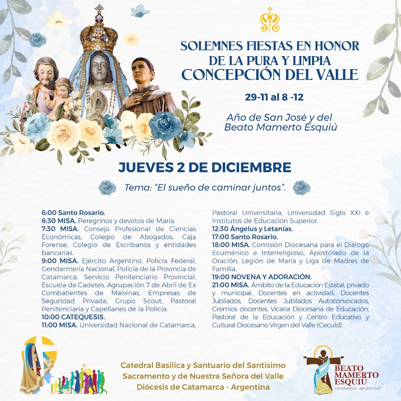 9:00 MISA. Ejército Argentino, Policía Federal, Gendarmería Nacional, Policía de la Provincia de Catamarca, Servicio Penitenciario Provincial, Escuela de Cadetes, Agrupación 7 de Abril de Ex Combatientes de Malvinas, Empresas de Seguridad Privada, Grupo Scout, Pastoral Penitenciaria y Capellanes de la Policía.