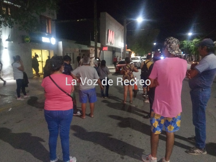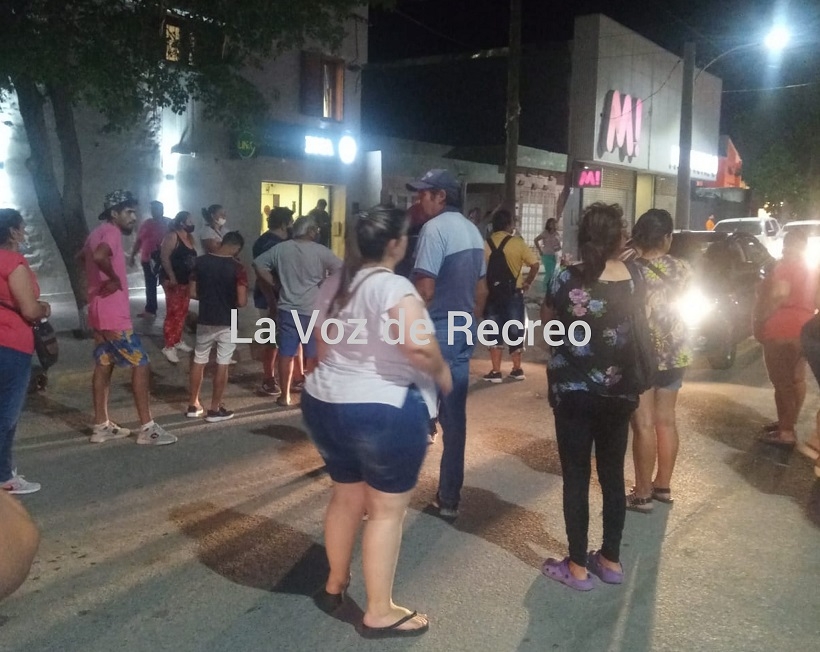 Más de 200 personas se manifiestan cortando avenida Presidente Perón, frente al Banco Nación de Recreo y la Comisaría Departamental, en pleno centro de nuestra Ciudad.