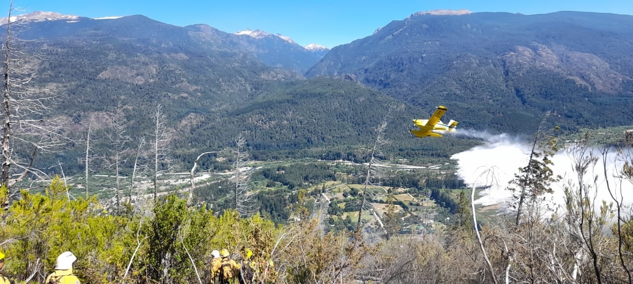 En el lugar, cuentan con la presencia de medios aéreos, una herramienta más para la sofocación de estos incendios forestales que afectan el Sur del país.