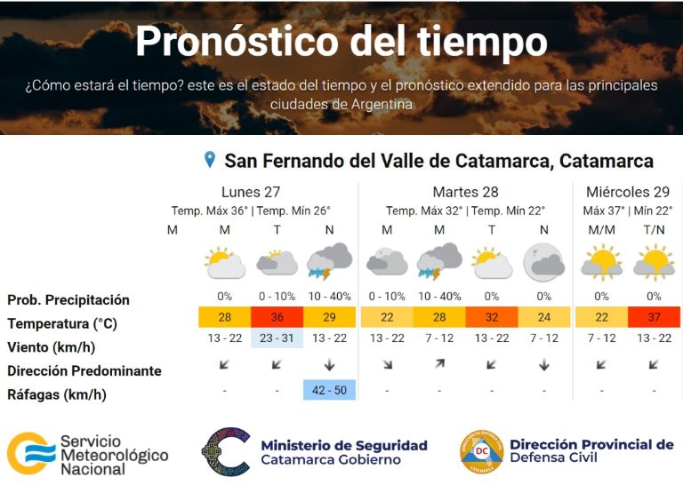 Además, el Servicio Meteorológico Nacional anuncia probabilidad de lluvias para mañana martes. Para hoy la máxima superará los 36°C, el martes los 32°C, y el miércoles más de 37°C.