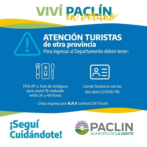 Para los turistas locales sólo se pedirá presentar el carné sanitario de vacunacion completo con dos dosis, mientras que para aquellos viajantes que provengan de otras provincias se solicitará, además, un test de PCR o Antígenos, realizados entre 24 y 48 horas previos al arribo.