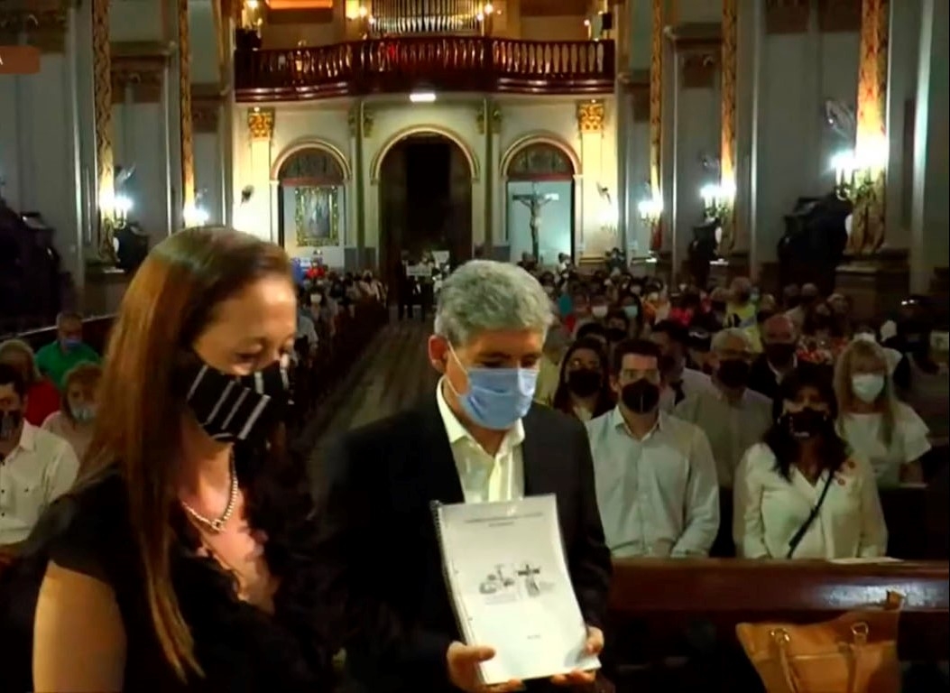 En el momento de las ofrendas, junto con el pan y el vino, se acercó el documento “Lineamientos Diocesanos para la Educación de Catamarca”, fruto de un intenso trabajo interdisciplinario de las instituciones que conforman la Vicaría Episcopal de Educación.