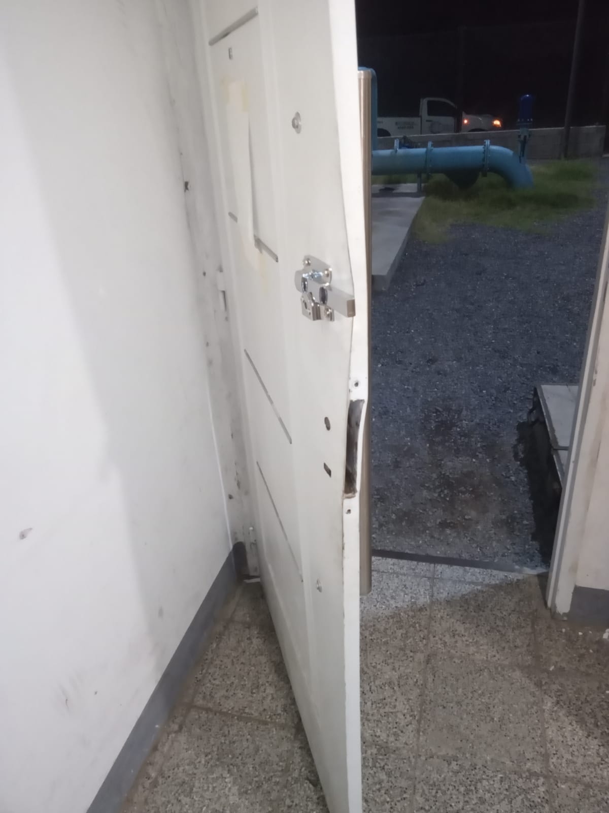 Durante los recorridos diarios, se detectaron en Rebombeo Sal Gema roturas en el cerco perimetral, en la puerta de acceso a los tableros de control y en el interior.