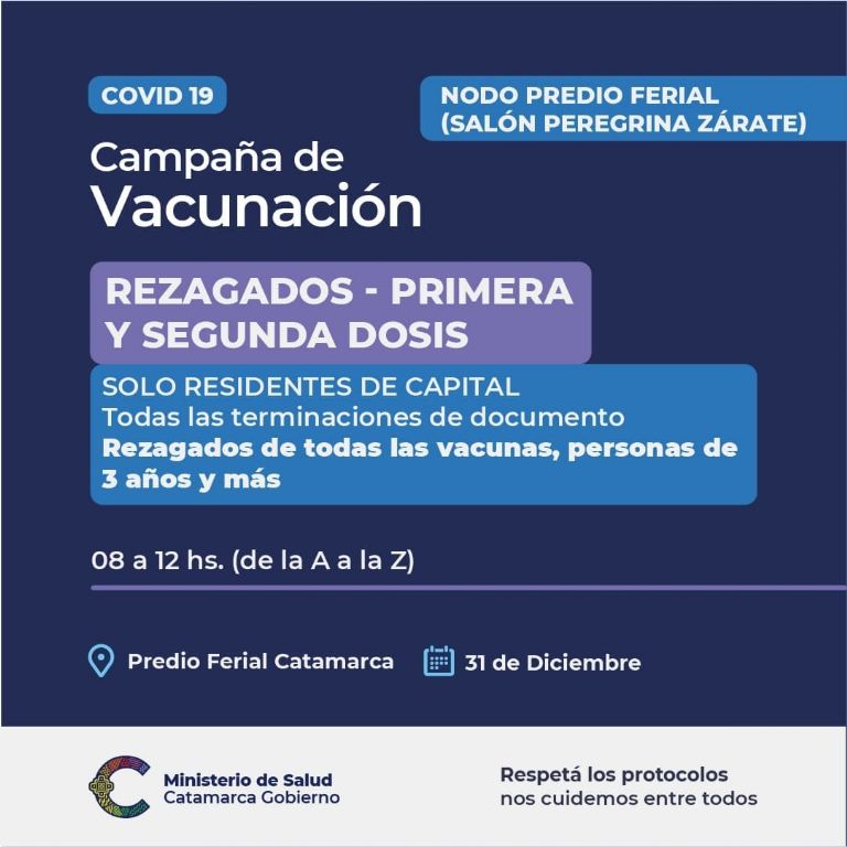 En el Salón Peregrina Zárate del Predio Ferial se inocula con primeras y segundas dosis a personas a partir de los 3 años (rezagados).