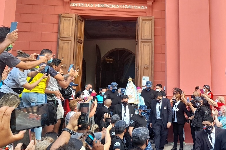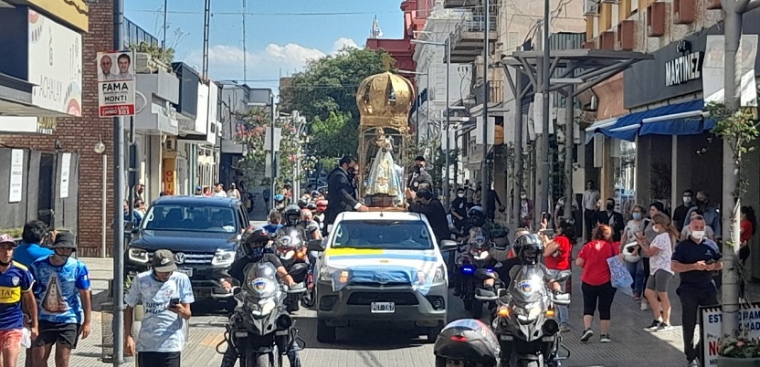 Ya colocada en la urna inició su marcha por las cuatro avenidas de la ciudad capital saliendo por calle Sarmiento. Familias enteras se apostaron a lo largo del trayecto para expresarle su amor incondicional, su gratitud, o pedirle un favor por su intercesión. Las fachadas de los hogares fueron ornamentadas con globos multicolores y en algunos tramos surcaron su camino con pétalos de flores, poniendo clima de fiesta a esta jornada.