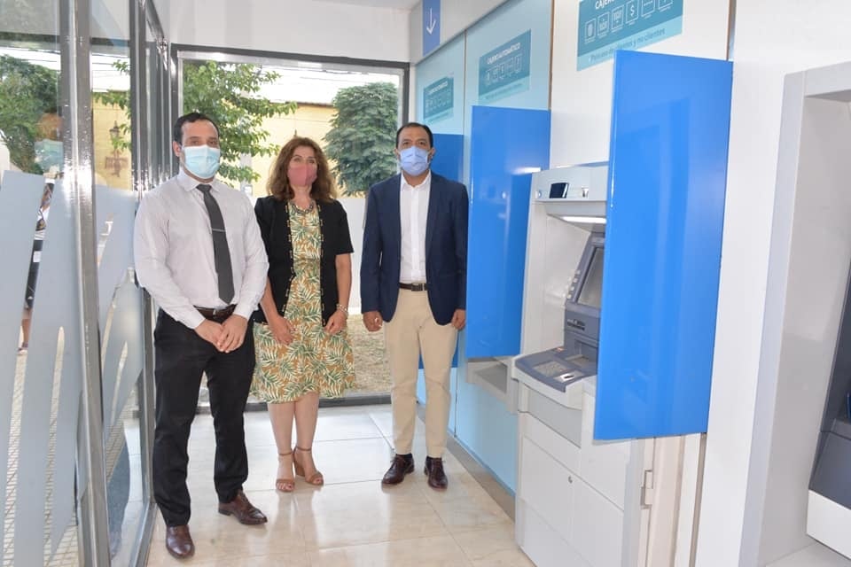 Este nuevo box tiene de cinco cajeros automáticos en nuestra ciudad, que se encuentra ubicado en el edificio municipal. Acompañaron además este importante momento, el jefe de Seguridad Bancaria, Jorge Triaca; el Tesorero local, Gustavo Campos; la secretaria de Asuntos Municipales de la Prov., C.P.N Erica Inga; el Secretario General del municipio, Prof. Antonio Camposano; la secretaria de Hacienda del municipio, Maria Fernanda Chaile y equipo; la secretaria de Gabinete, Lic. Mariel Acosta; el comisario Mayor, Sergio Soria; la directora de RR.HH, Lic. Verónica Santos; la Asesora Legal, Doc. Alicia Pastorelli.