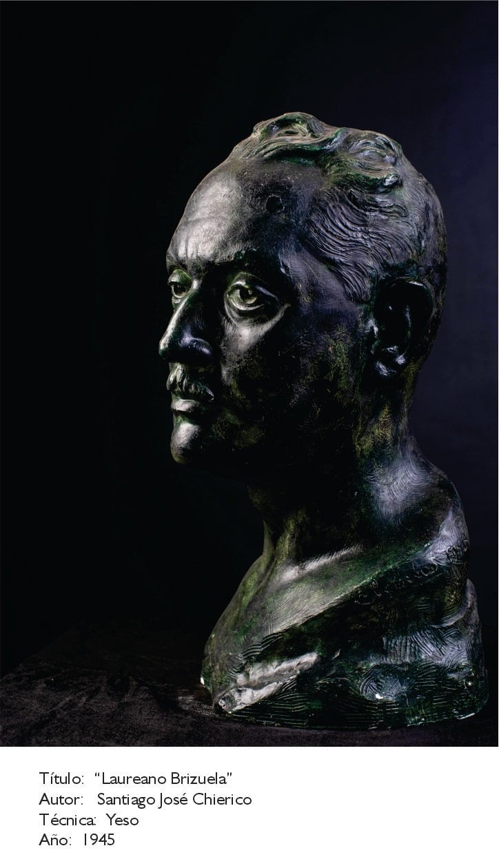 1 - “Cabezas”, de las décadas del `20 al `40. Encontramos al ingresar, el retrato del artista Laureano Brizuela, que él mismo encargara al escultor Chierico unos años antes de su fallecimiento. En la Sala podemos apreciar retratos o evocaciones en forma de cabezas realizadas por artistas que se vincularon o fueron contemporáneos de Laureano Brizuela (entre ellos, Santiago Chierico, Carlos de la Cárcova, Francisco Marini, José Sedlacek). La sala proporciona un entrecruzamiento de gestos y sentidos que inundan el espacio.