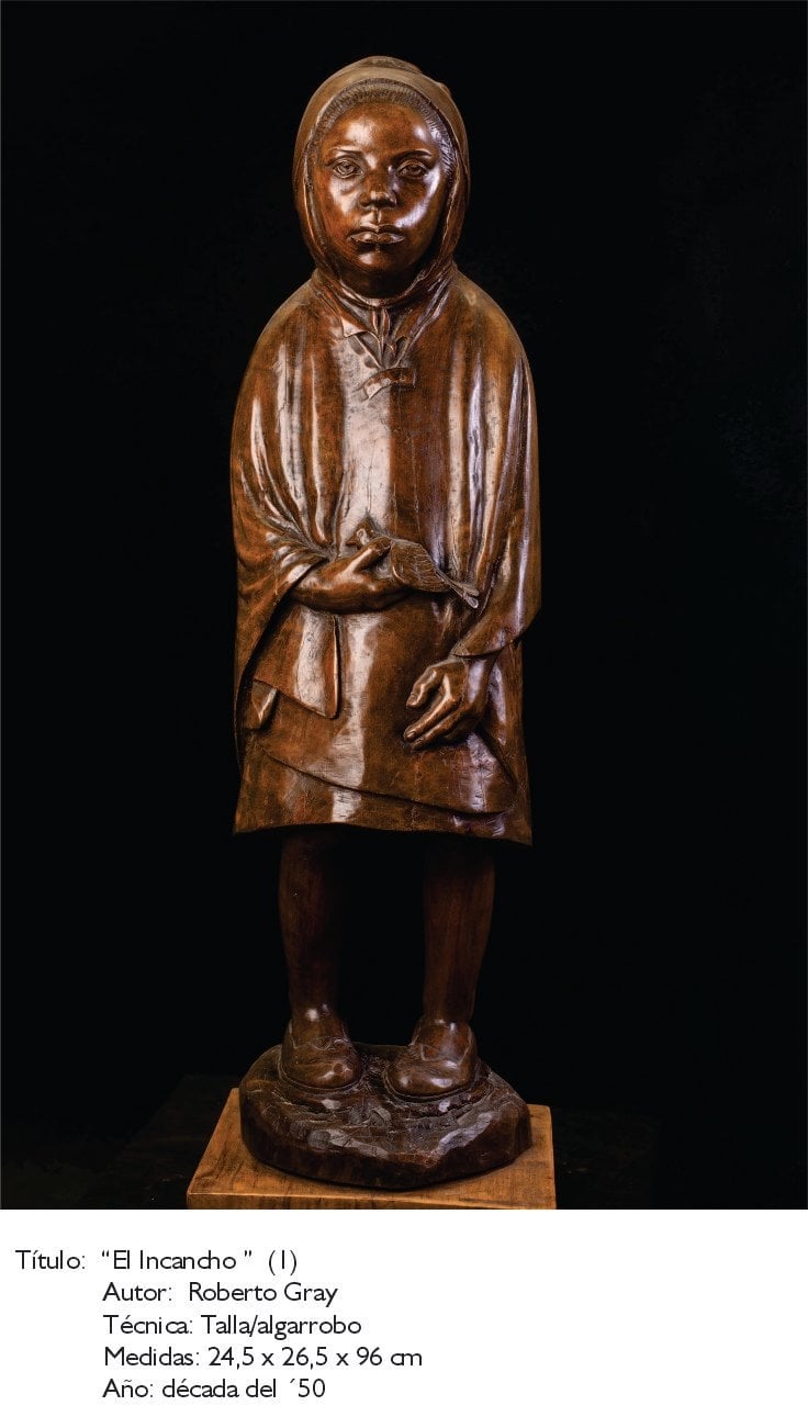 2 – Tres tallas en algarrobo del maestro Roberto Gray integran una segunda sala para proponer una percepción cargada de muchas emociones. “El volumen de las esculturas, el material en que han sido realizadas, la impronta de su cincel, denotan una identidad que emerge sólida y referencial de la mano del artista”.
