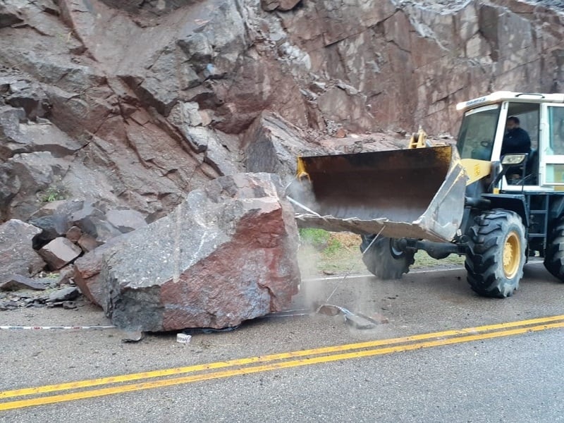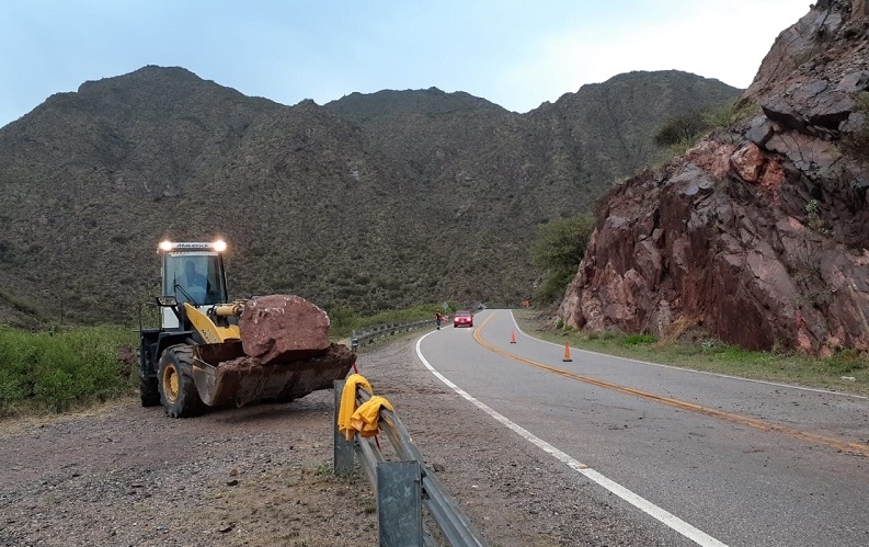 Precaución en La Cébila por posibles desprendimientos menores en banquina y bordes de calzada. Personal y equipos de la DNV trabaja en el tramo para optimizar las condiciones de transitabilidad. Reducir la velocidad.