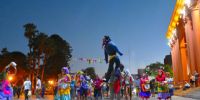 Acompañados de los bailarines del ballet, recorrieron caminando, y cantando por calle República las cuadras que separan la Plaza 25 de Mayo de la Alameda y allí, en el corazón de este paseo, el ballet desplegó un cuadro de danzas de carnaval que recibió los aplausos de la gente.