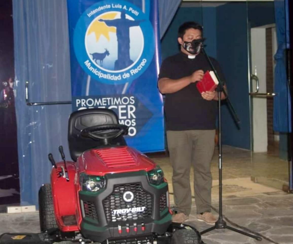 En representación de parroquia San Roque, Carlos Carabajal, bendijo los nuevos vehículos que se incorporan al parque automotor del municipio.
