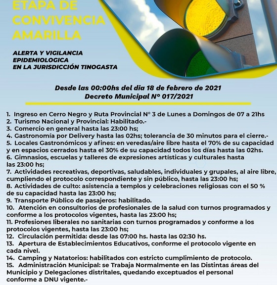 miércoles, 17 de febrero de 2021 19:21 miércoles, 17 de febrero de 2021 19:21 El decreto fue firmado por el intendente Sebastian Noblega, y lleva el número 017/2021. Se habilita nuevamente el turismo provincial y nacional, entre otras disposiciones.