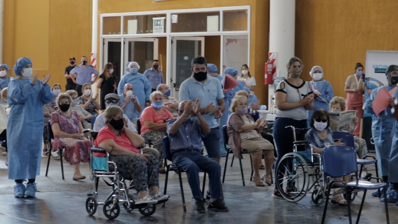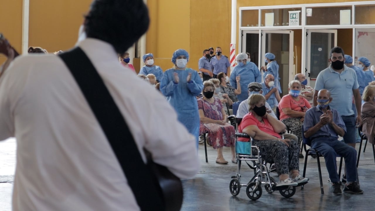 La propuesta, ofrecida desde la Secretaría de Gestión Cultural, del Ministerio de Cultura y Turismo, consistió en pequeñas presentaciones musicales que fueron muy bien recibidas y aplaudidas por los presentes, que iban ingresando en turno a recibir la primera dosis de la vacuna-